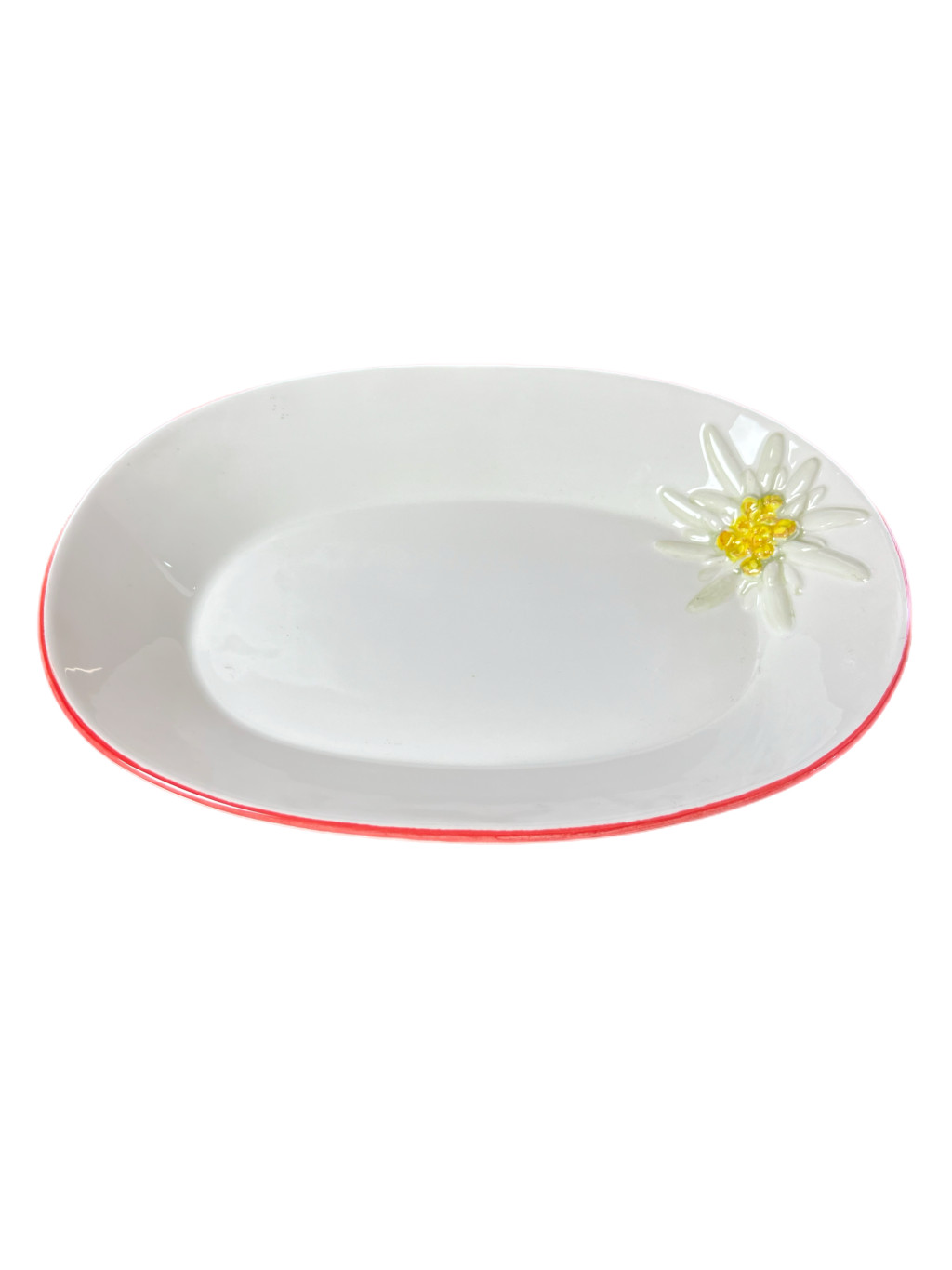 Havasi gyopár mintás ovális tál 28*19 cm piros szélű