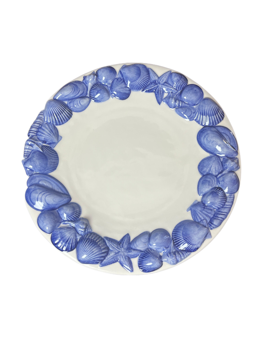 Kagyló mintás lapos tál 30 cm kék