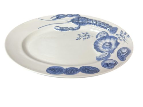 Kagyló-rák mintás, ovális kínáló 36*25 cm kék